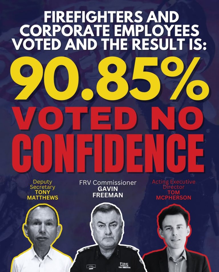 More than 120 days ago, 90.85% of Fire Rescue Victoria firefighters and corporate staff declared NO CONFIDENCE in FRV’s leadership