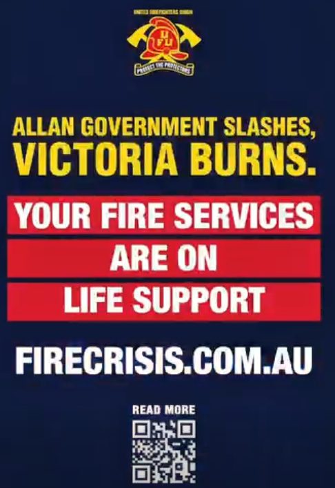 The Allan Government has repeatedly ignored FRV Firefighters’ requests for much-needed replacement of failing fire trucks and equipment, and FRV Firefighters’ demands to stop wasting public monies in an attempt to remove FRV Firefighters’ conditions of employment.