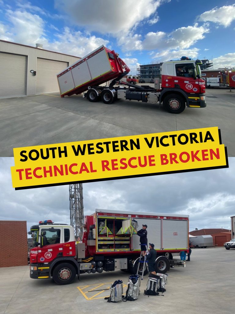 South West Victoria has been left without confined space and trench rescue capability after Fire Station 70 Warrnambool’s Technical Rescue truck failed while unloading its rescue pod.