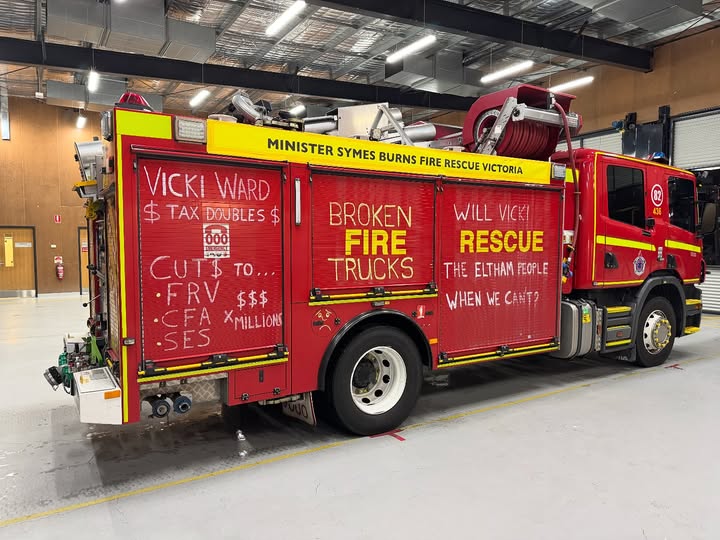 In just the last 18 hours, fire trucks have failed across Victoria, exposing a system that is falling apart — and putting lives at risk. At Footscray (FS47): • Ladder Platform 47, used to rescue people from heights, broke down — leaving no rescue at height capability anywhere in Melbourne. • Pumper 47 also failed […]